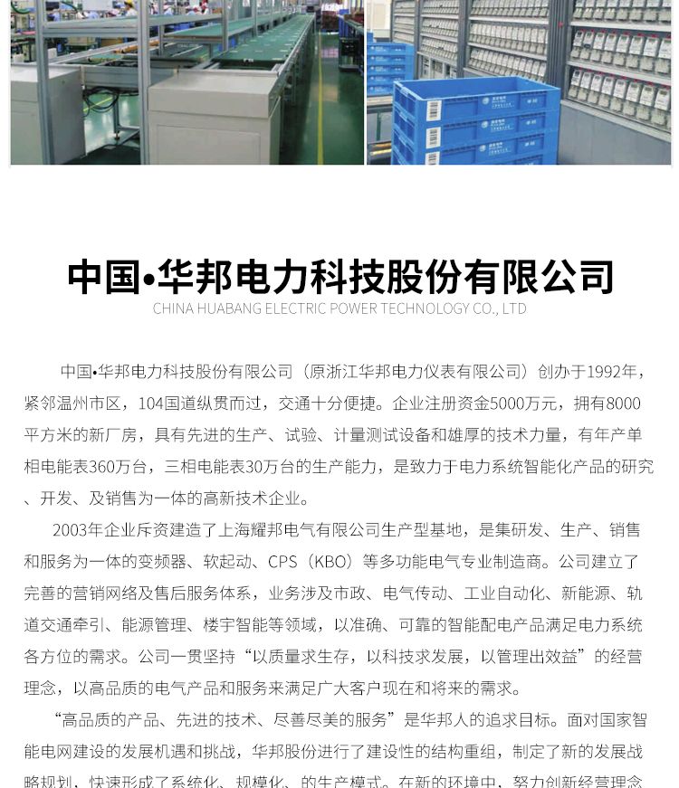 华邦电力科技股份有限公司,专ye生产电子式电能表,导轨式电能表,预付费电能表,插卡电表,费控智能电能表(国网表),复费率电能表,峰谷电表,分时电表,远程控制智能电表,远程集抄电表,远程拉合闸电表,远程后台预付费电能表,手机APP缴费电表,微信缴费电表,支付宝缴费电表,能耗监测管理系统,多用户电能表,一卡通水电表,GRPS智能电表,GPRS无线远程控制电表,NB电表,485远程控制电表,多功能电能表,数显表,多功能电力仪表,智能电流表,智能电压表,变频器,软启动器等产品,华邦股份公司以保证质量,客户至上,价格优惠,尽善尽美的服务,精诚与您合作,共创辉煌! -